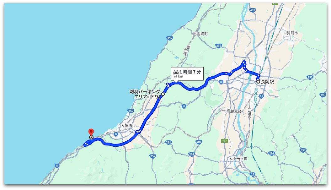 ちょっと南下し、「つーりんぐらむ」でお姉ちゃんも訪れていた、柏崎市にある恋人岬へ向かうことにします。